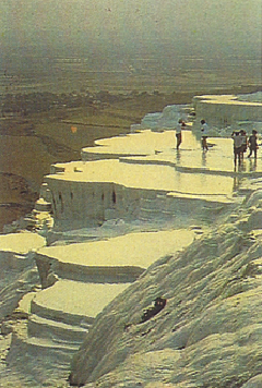 Weather predictions were poor for the next 2 days: time to move on. Penny made reservations for us at the Hal-Tur Hotel in Pamukkale. We had a lovely room facing the salt terraces. What with rain and being mid-week, the hotel was not crowded. We also had a bathtub, and used it! We appreciated the excellent food, wine and fireplace in their restaurant.