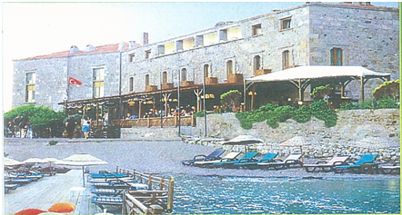 Essentially wending our way back to Istanbul, we headed to Assos and the Caravansy Hotel by the sea. Our concierge graciously booked 2 days at this wonderful rustic resort that looked over the bay and up a hill to a castle. We had a good view of the acropolis in Pergamon as we passed, but we didn’t stop. The ride down the hills to Assos was long and hazardous but we made it and checked into our third floor room-with-balcony.