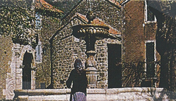 The Templars built the north wing, including a Romanesque Church and the granary tower but the Hospitallers expanded the village in the 15th Century adding a good deal of charm to the austere walled town. The church was typically dark with a single aisle to the alter but the sunny and beautiful plaza beckoned. Passing a lovely stairwell, we walked to the only open side of the plaza where we looked over the low wall and down the valley to the surrounding hills, Some Commanders and soldiers stabled their horses at the nearby site La Cavalerie while residing (with families?) in Sainte Eulalie.