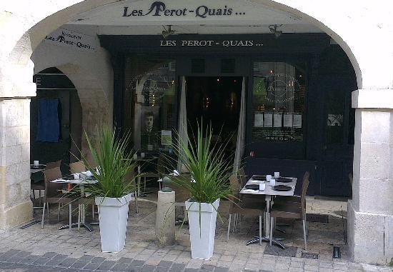 We arrived in La Rochelle, France around 2 and hungry. Inadvertently I parked in a “Police Area” the only lot with spaces, and across the street from a handsome restaurant. The patio, due to intermittent rain, was empty and the inside, crammed.