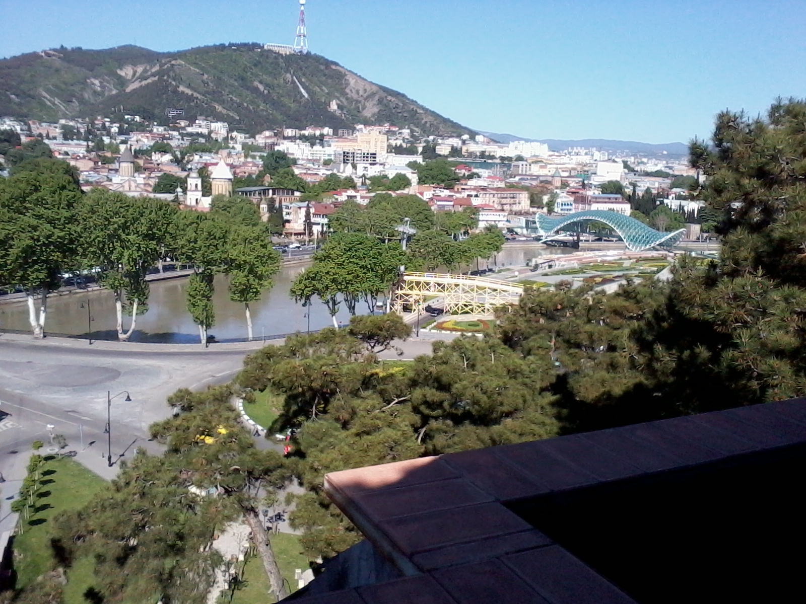 There are 3 shots from this fantastic balcony overlooking most of the city of Tbilisi, Georgia.