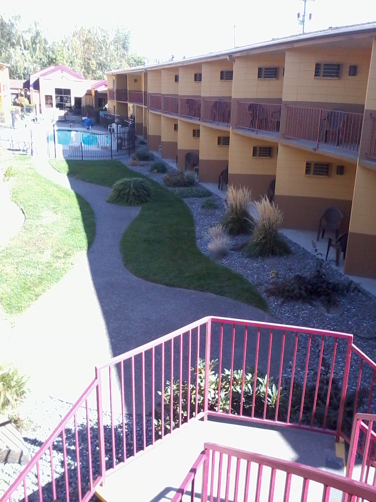 Then we entered bustling Walla Walla and found our reserved Red Lion Inn( circa 1970’s) ideally located town center. It was an original Red Lion with the beautifully designed bedroom and cozy balcony overlooking a small, green courtyard and pool.