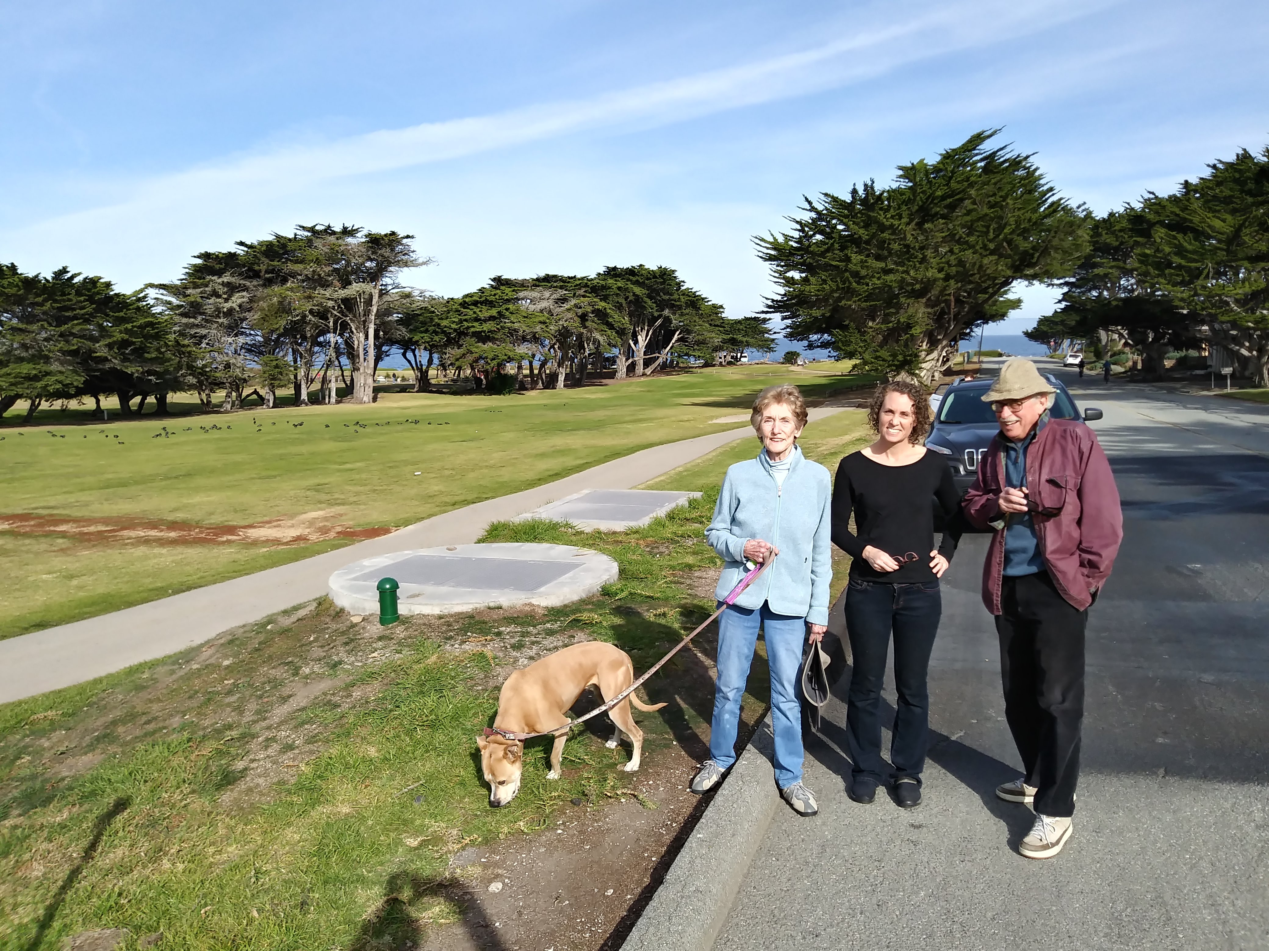 They arrived from Sacramento while we drove up from San Luis Obispo- missing most of the Holiday traffic. Our rooms, were on the second floor and had a balcony. You overlook the cemetery, deer, golf course, and see, hear and smell the ocean. You can walk most everywhere and we did.