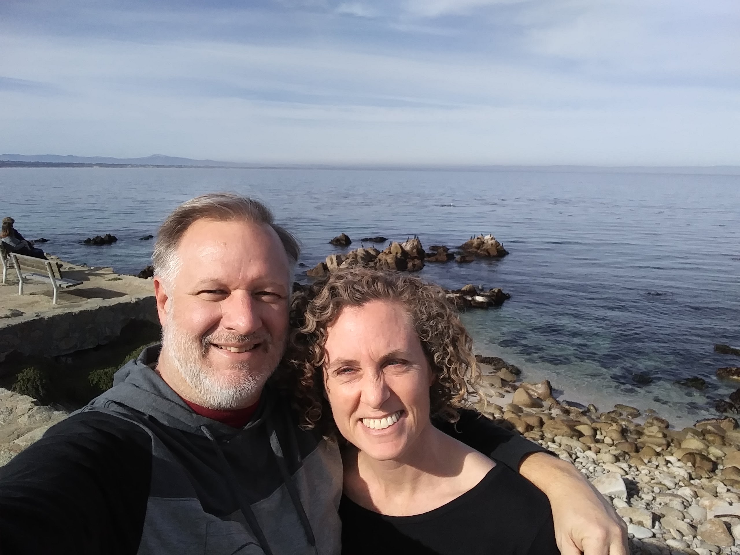 Steve asked a trail walker to take our pictures and she arranged us so that we could move around and she could get the trail and the ocean within the sight lines.