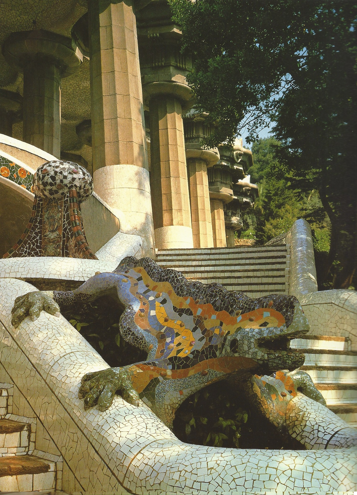 Gaudi almost completely built this park using material found in the existing landscape.  Building roads and viaducts produced stones and rubble which he incorporated in his construction: preceding the “collage” technique of the Dadaists in the 20’s.