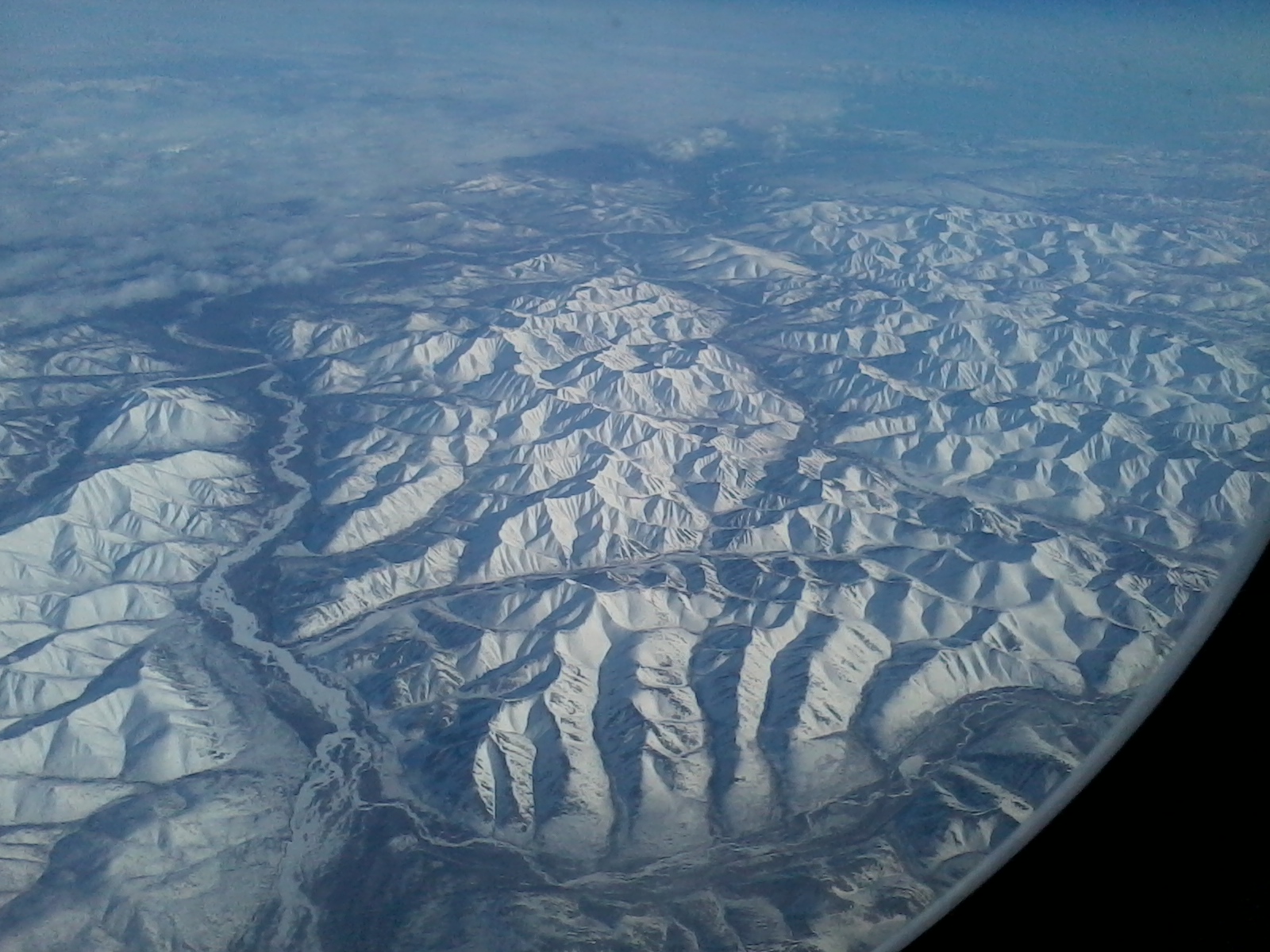 I took this picture when plastered against the window, about 30 minutes before we landed. (Probably over Manchuria) The fog and smog was about the same as flying into San Francisco. Happy to see our guide “Charlie” with a big sign “BOTWINS” after the 15 hour flights (albeit 1st class—using miles) and a bit wobbly from the food and wine on the long flight.