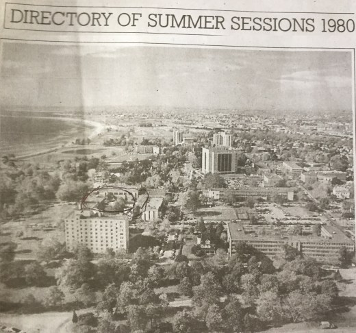 The circled part of the picture is the original house being smothered by the new campus buildings. So what did grandpa Murray do? He willed it to them after he died at the highest possible price.