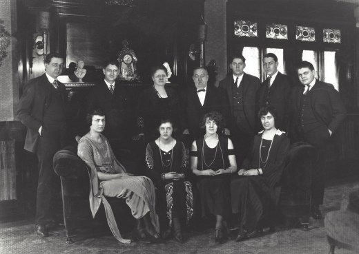The backrow center is Frank and his wife, Caroline Feuerbacher. And in the front row, is my mother Caroline with all that curly( red) hair. Originally there were 12 children, 4 sons had died already from childhood diseases that today are curable.