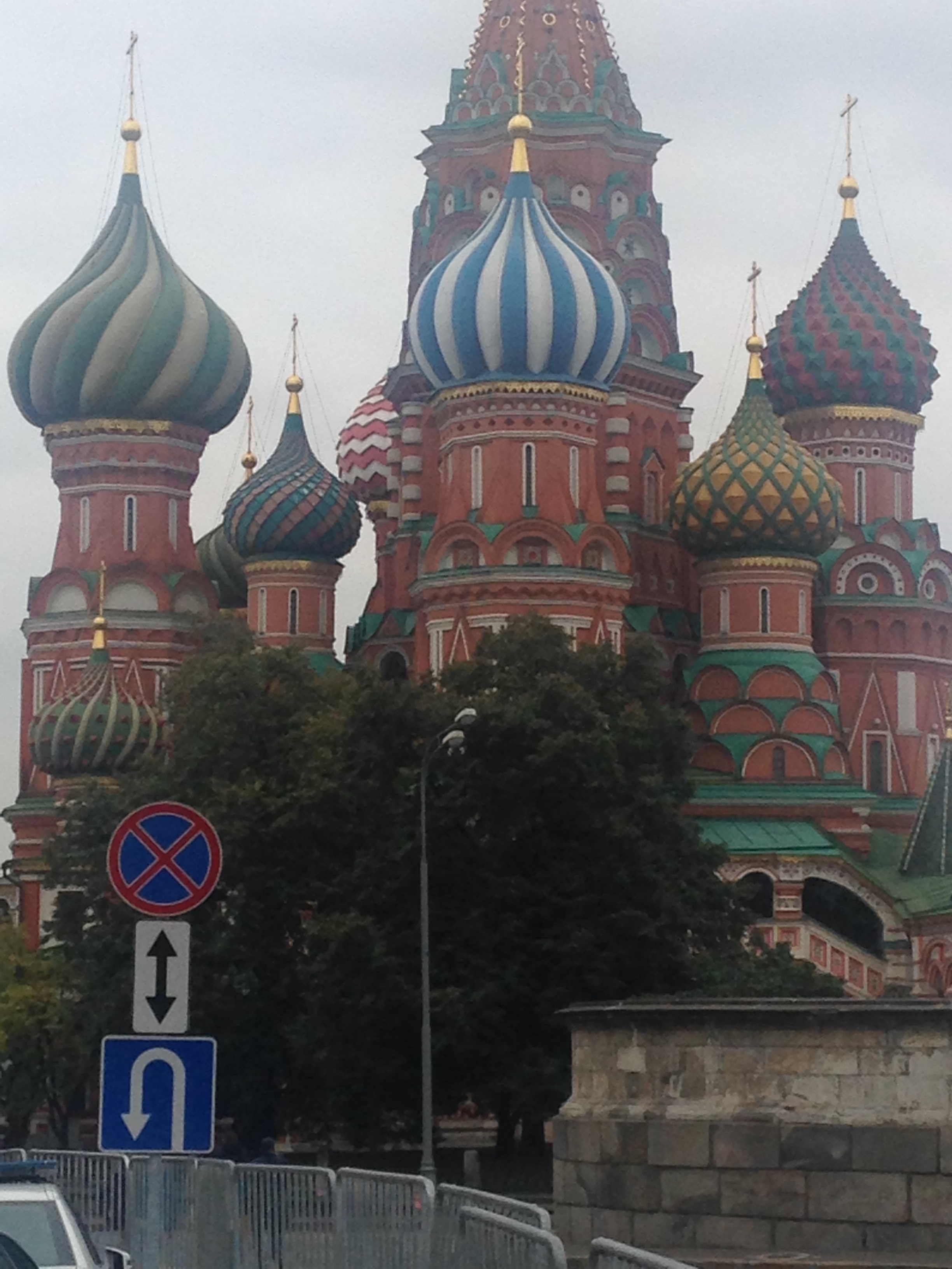 At the top is the State Historical Museum (Red building with two towers) to the left is the Grand Kremlin Palace and at the bottom is the famous St. Basil’s Cathedral.