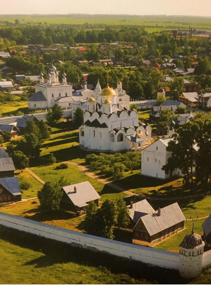 This is the picture of our lodging at the Art Hotel Nikolaevsky, Posad. Looking closely on the left the building with three green roof tops is where we stayed in a lovely suite. The red roofed building with the blue roof was reception-dining-bars- and hotel rooms.