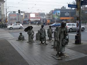 After the warThe survivors  are climbing up through the rubble to start over! The last person is only half way up.  These statues were built on a street corner as a reminder.
