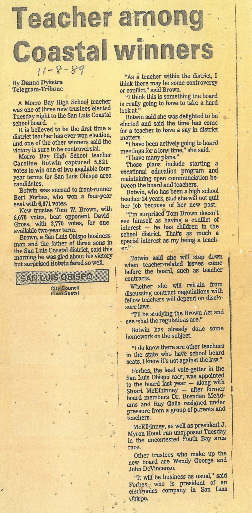 We have a high school teacher elected to HER OWN BOARD of education. ANY vote she casts would be a conflict of interest!