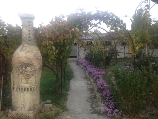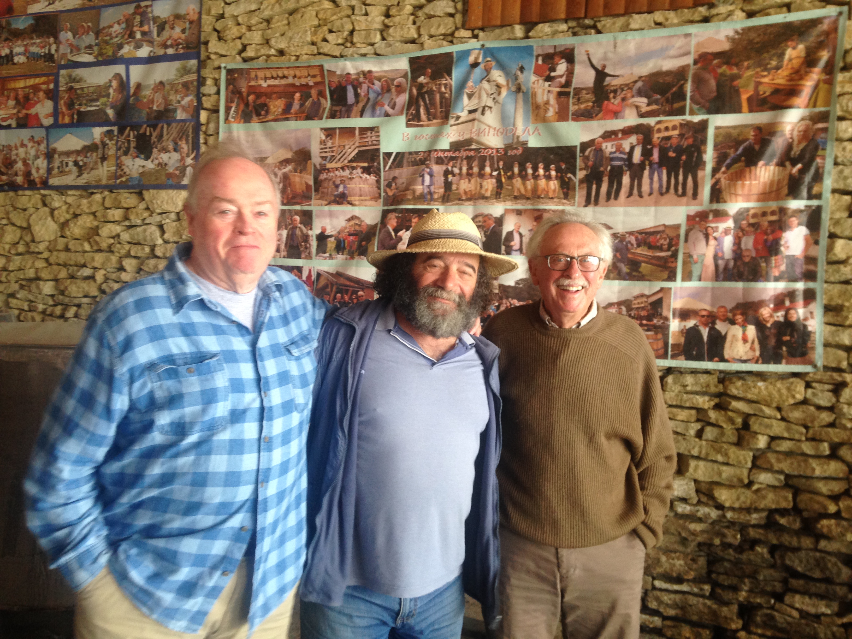 This is the hospitality room where Yanis brought us to sample some of his wine. It is also his, “hospitality” room and includes the following options: music, dining, wine tasting, and much more. Yanis is center, Mike is on the right and Charles Gordon left. The man who wrote the book, “The Russian Wine Country- Sleeping Beauty Awakens” and that is what brought us here.